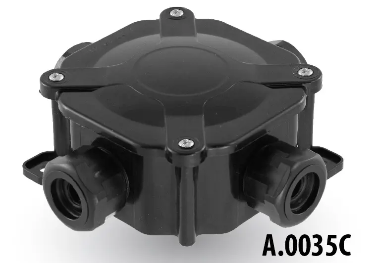 - AC-durka, veľká, čierna, povrchová (6455-27P) - Rozmery: 144 x 132 x 67 mm - PG21, IP67, Pracovná teplota: -20°C - +60°C - 5x6mm2 - Počet vývodiek:4 - Balenie: 20 ks