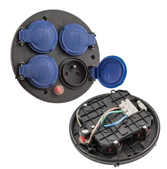 Stredový disk, 230V, IP44, tepelná ochrana Max výkon: 3600W Farba: čierna Zásuvky: 4x16A/230V Priemer: 150mm