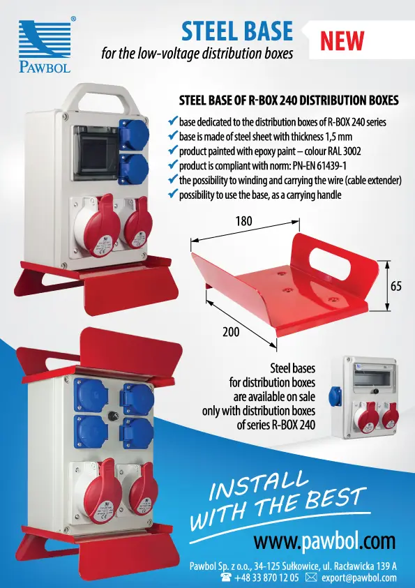 R-BOX 240-PS, PG16, ABS, IP44 Rozmery: 200/250/150 (+ podstava 180/200/65) Prepínač Zásuvky: 2x250V 1x32A/5p 1x16A/5p Balenie: 1ks