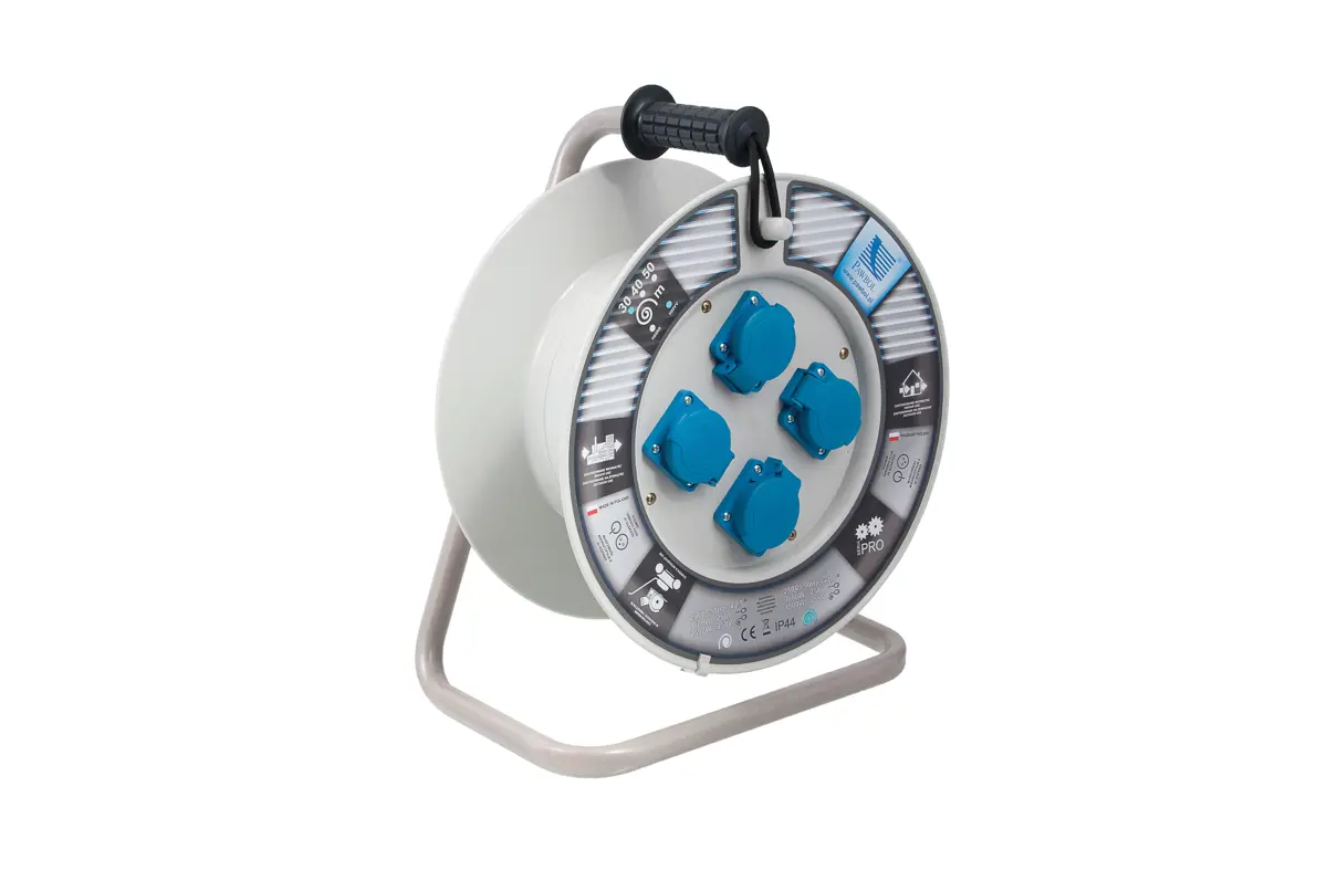 Prázdny bubon, IP44, 250V Zásuvky: 4xGZ16A Priemer: 340mm Farba: biela Rozmery: 500/330/670