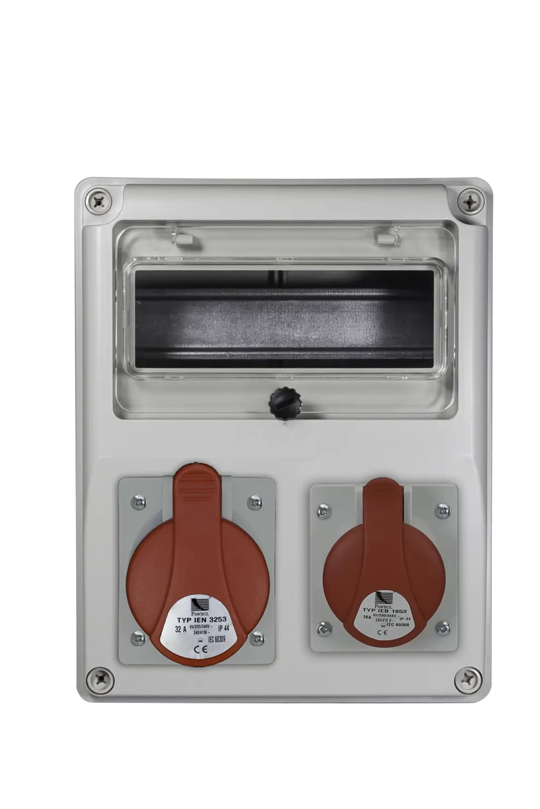 R-BOX 240-8, 1x16/5, 1x32/5, IP44, PG16 8S inšpekčné okienko Materiál: ABS Rozmery: 200,5/252,5/103mm Balenie: 1ks