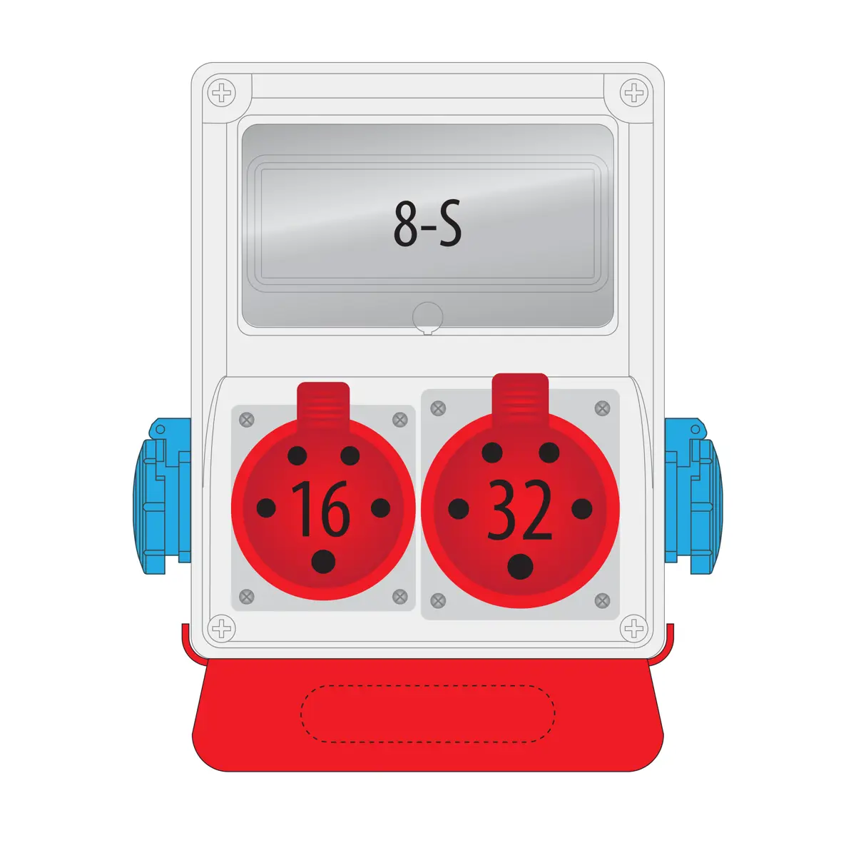 R-BOX 240-PS-1, PG16, ABS, IP44 Rozmery: 200/250/150 (+ podstava 180/200/65) 8S inšpekčné okienko Zásuvky: 2x250V 1x32A/5p 1x16A/5p Balenie: 1ks
