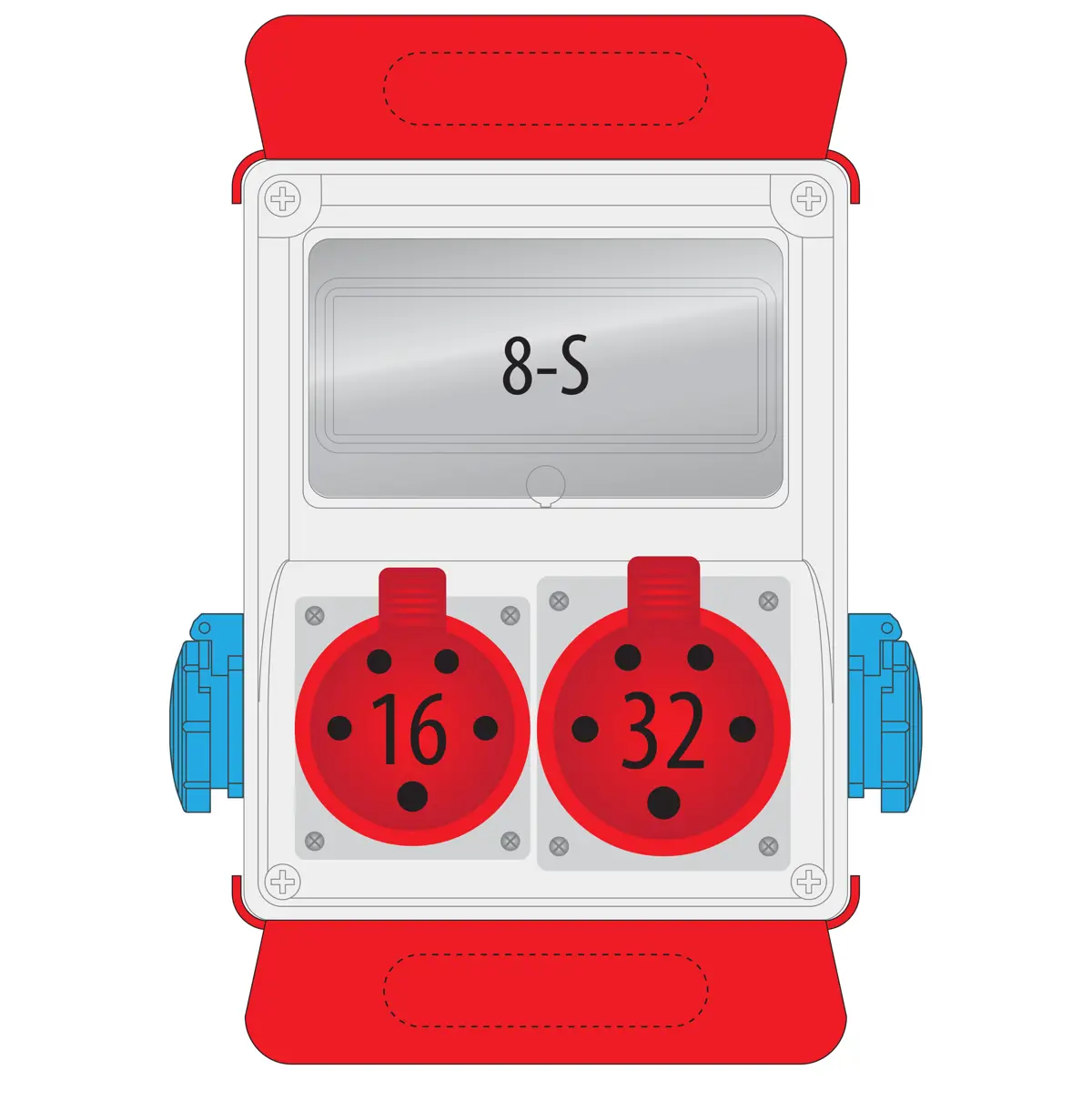 R-BOX 240-PS, PG16, ABS, IP44 Rozmery: 200/250/150 (+ podstava 180/200/65) 8S inšpekčné okienko Zásuvky: 2x250V 1x32A/5p 1x16A/5p Balenie: 1ks