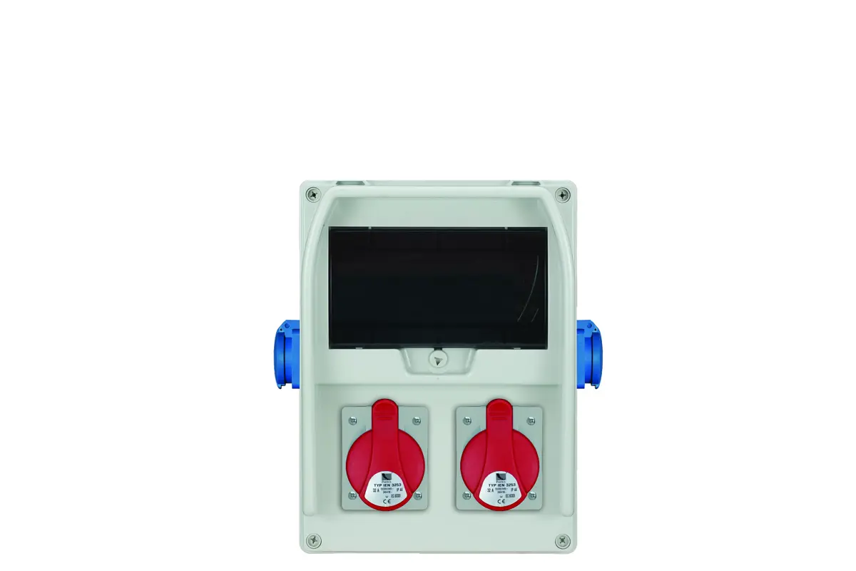 R-BOX 300R-9 s rúčkou, PG21, ABS, IP44 9S inšpekčné okienko 2x250V 2x32A/5p Rozmery: 280/355/157mm Balenie: 1ks