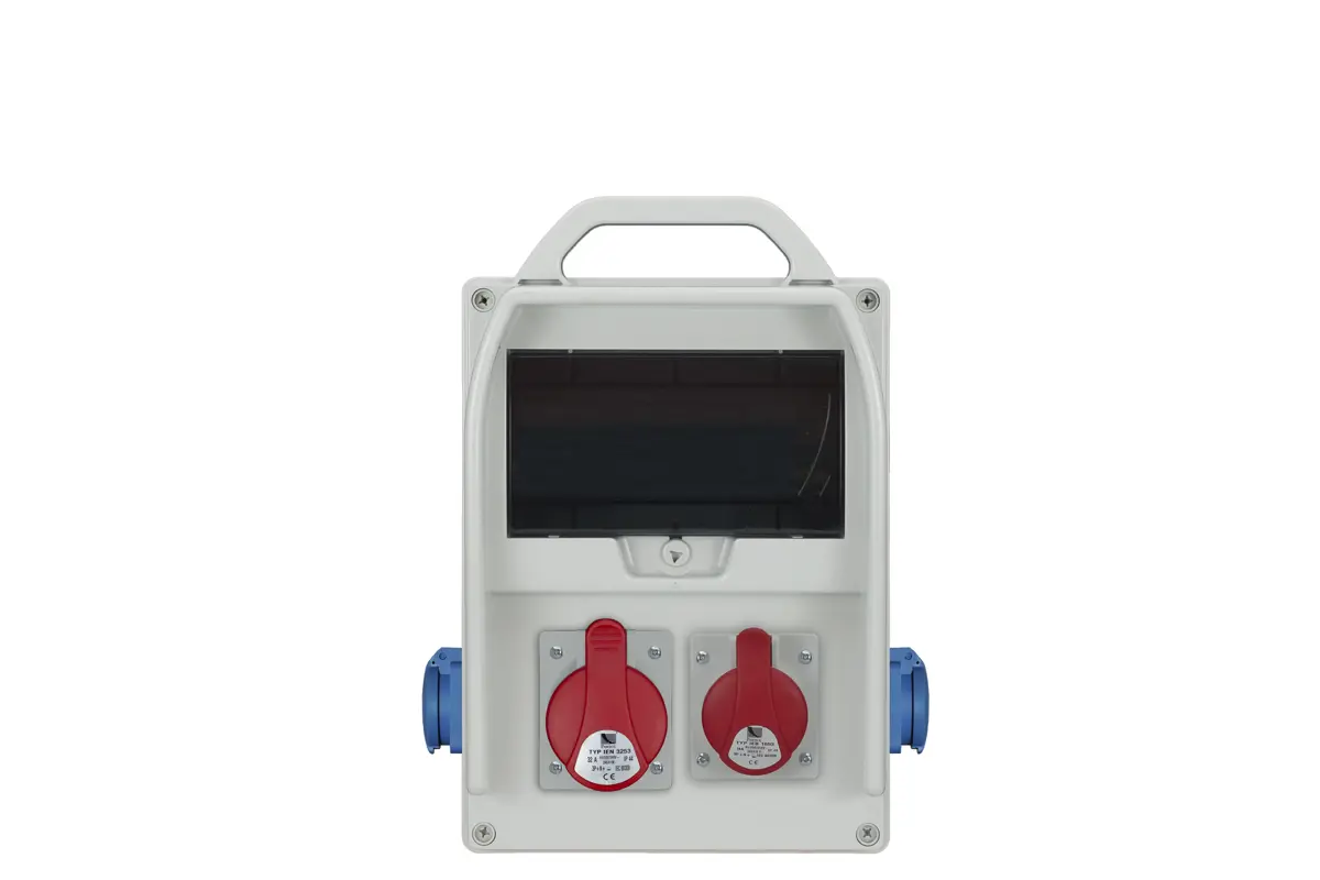 R-BOX 300R-9 s rúčkou, PG21, ABS, IP44 9S inšpekčné okienko 2x16A/250V 1x16A/4p 1x32A/4p Rozmery: 280/355/157mm Balenie: 1ks