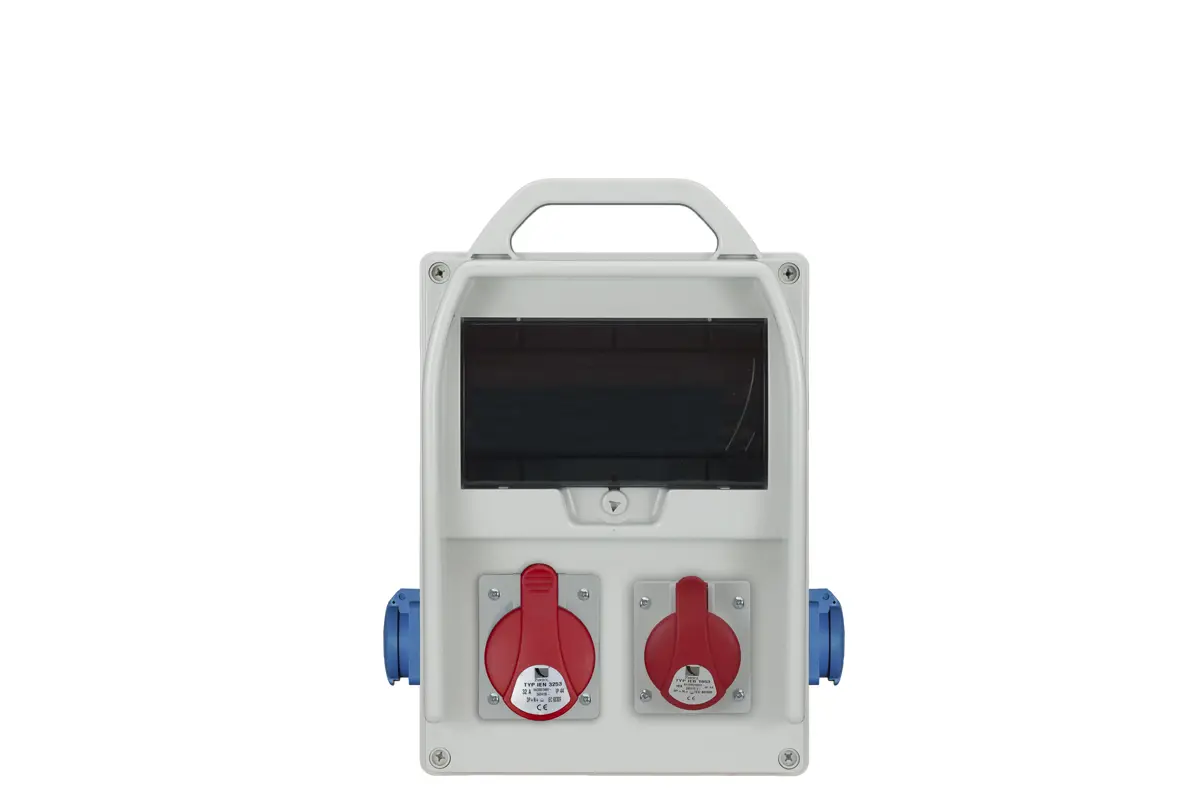 R-BOX 300R-9 s rúčkou, PG21, ABS, IP44 9S inšpekčné okienko 2x16A/250V 1x32A/5p 1x16A/5p Rozmery: 280/355/157mm Balenie: 1ks