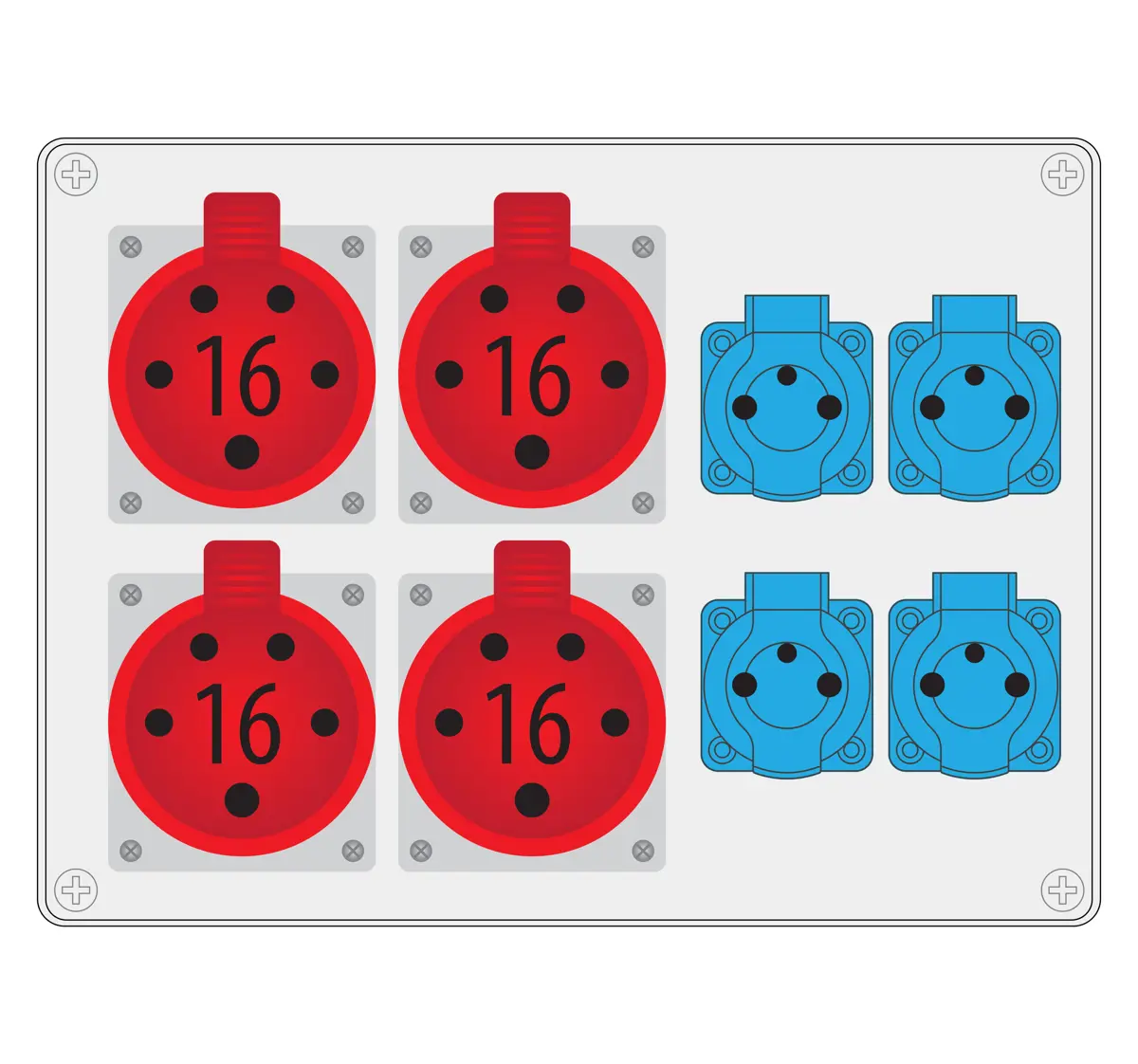 R-BOX 300, PG21, ABS, IP44 Rozmery: 310/230/120-200 Zásuvky: 4x250V 4x16A/5p Balenie: 1ks