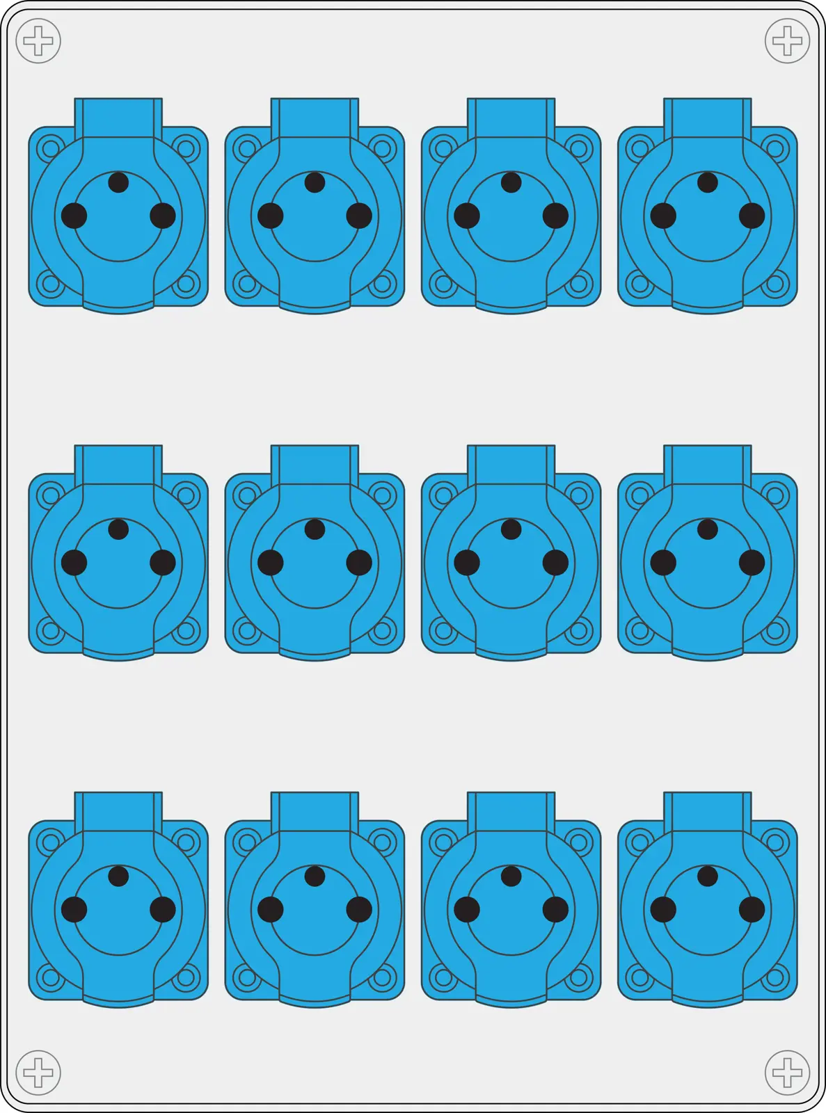 R-BOX 300, PG21, ABS, IP44 Rozmery: 310/230/120-200 Zásuvky: 12x250V Balenie: 1ks