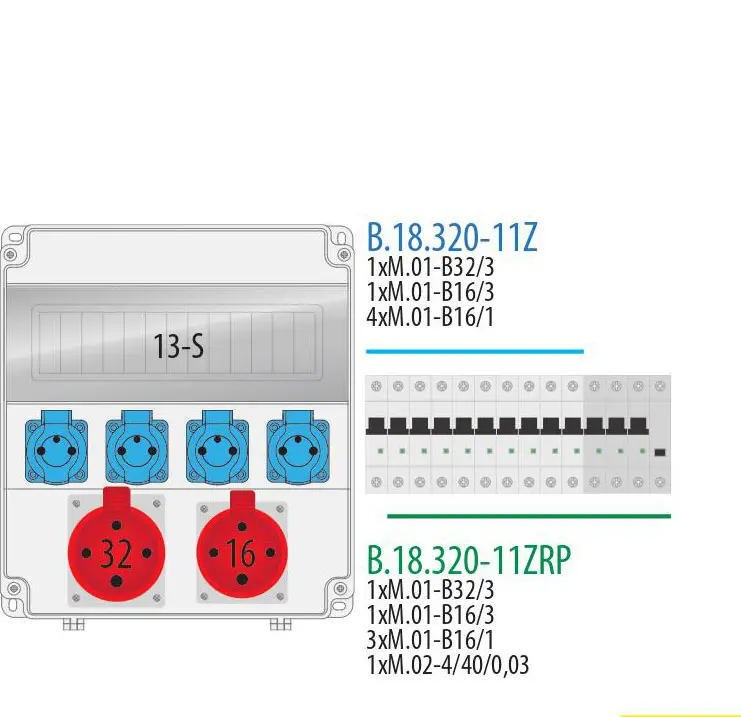 1xM.01-B32/3, 1xM.01-B16/3, 3xM.01-B16/1, 1xM.02-4/40/0,03