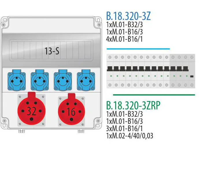 1xM.01-B32/3, 1xM.01-B16/3, 3xM.01-B16/1, 1xM.02-4/40/0,03