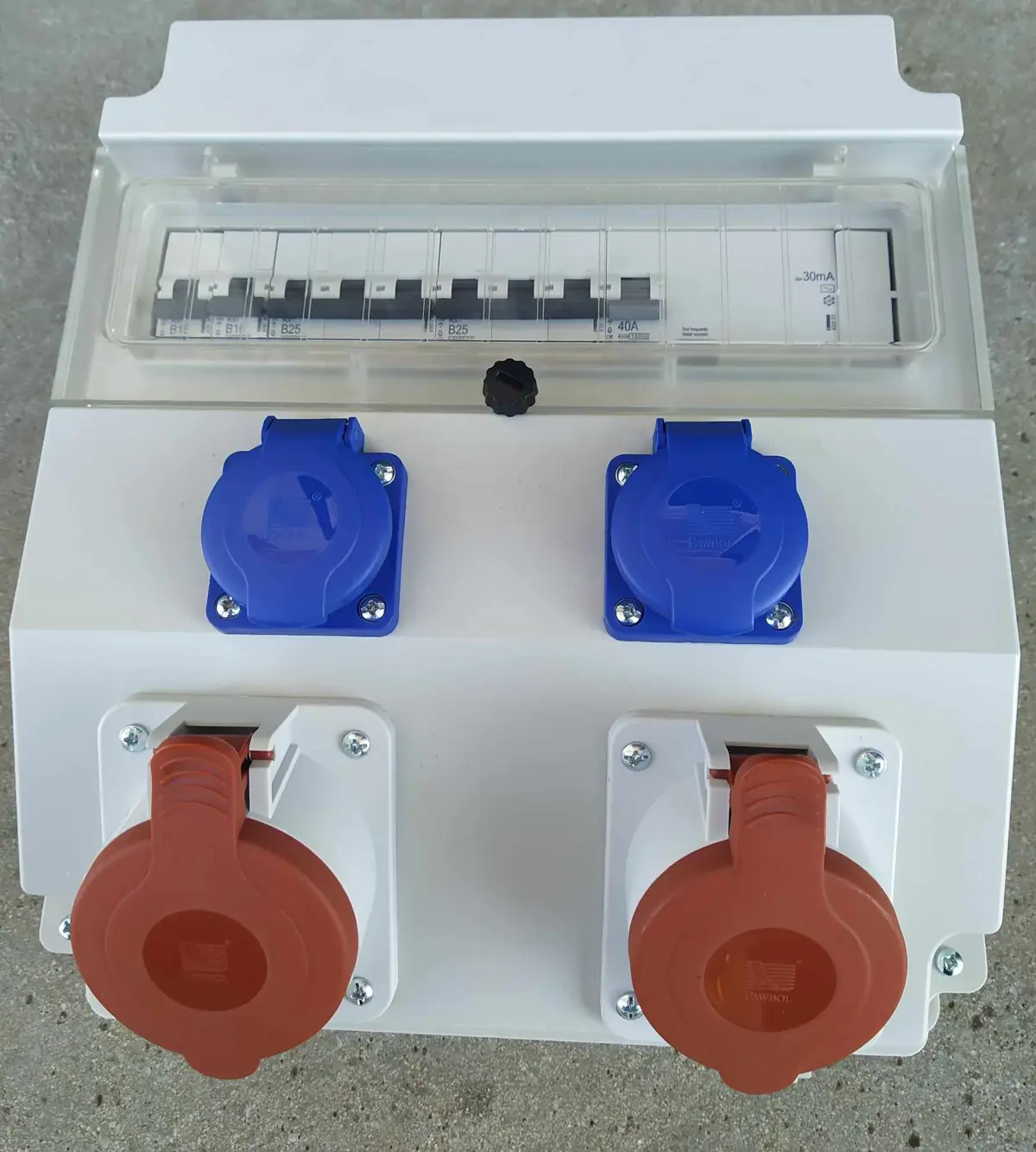 Rozvodnica na požiadavku zákazníka Osadenie: 1x32/5, 1x32/4, 2x230V, IP44, 13S Istenie: 1xM.02-40/40/0,03, 2xB25/3, 2xB16/1