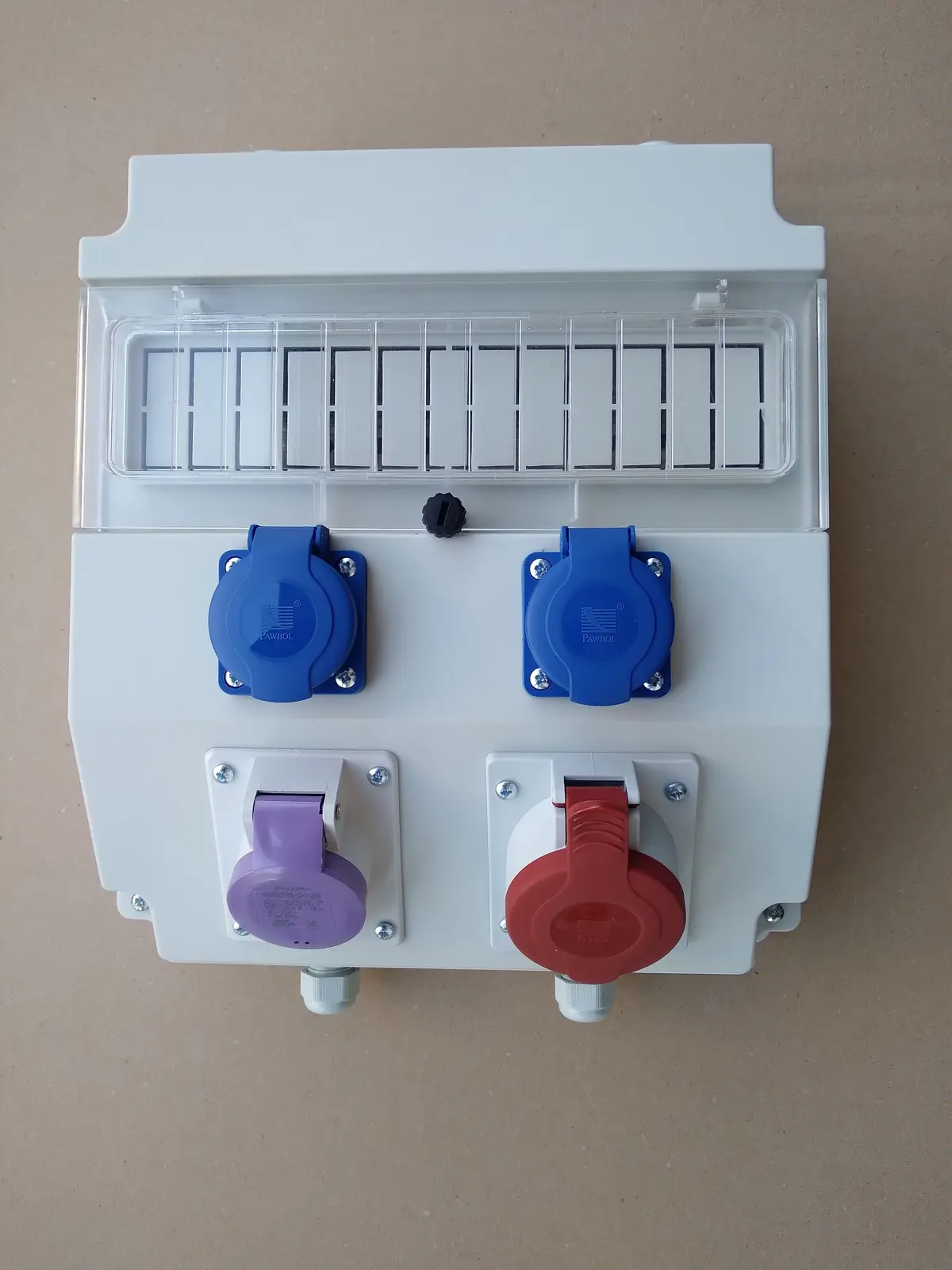 Rozbočnica na požiadavku klienta: Osadenie: 1x16/5, 2x230V, 1x24V, IP44, 13S, osadenie metrických vývodiek z hora aj zospodu.