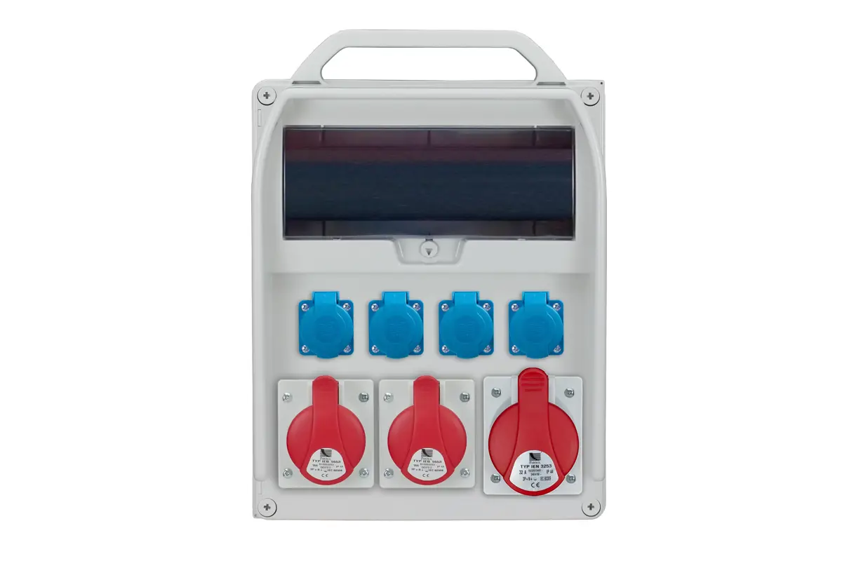 R-BOX 380R, PG21, ABS, IP44 4x16A/250V 2x16A/5p 1x32A/5p Rozmery: 310/435/156mm Balenie: 1ks