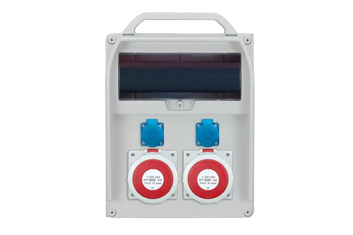 R-BOX 380R, PG21, ABS, IP44 2x16A/250V 2x63A/5p Rozmery: 310/435/156mm Balenie: 1ks