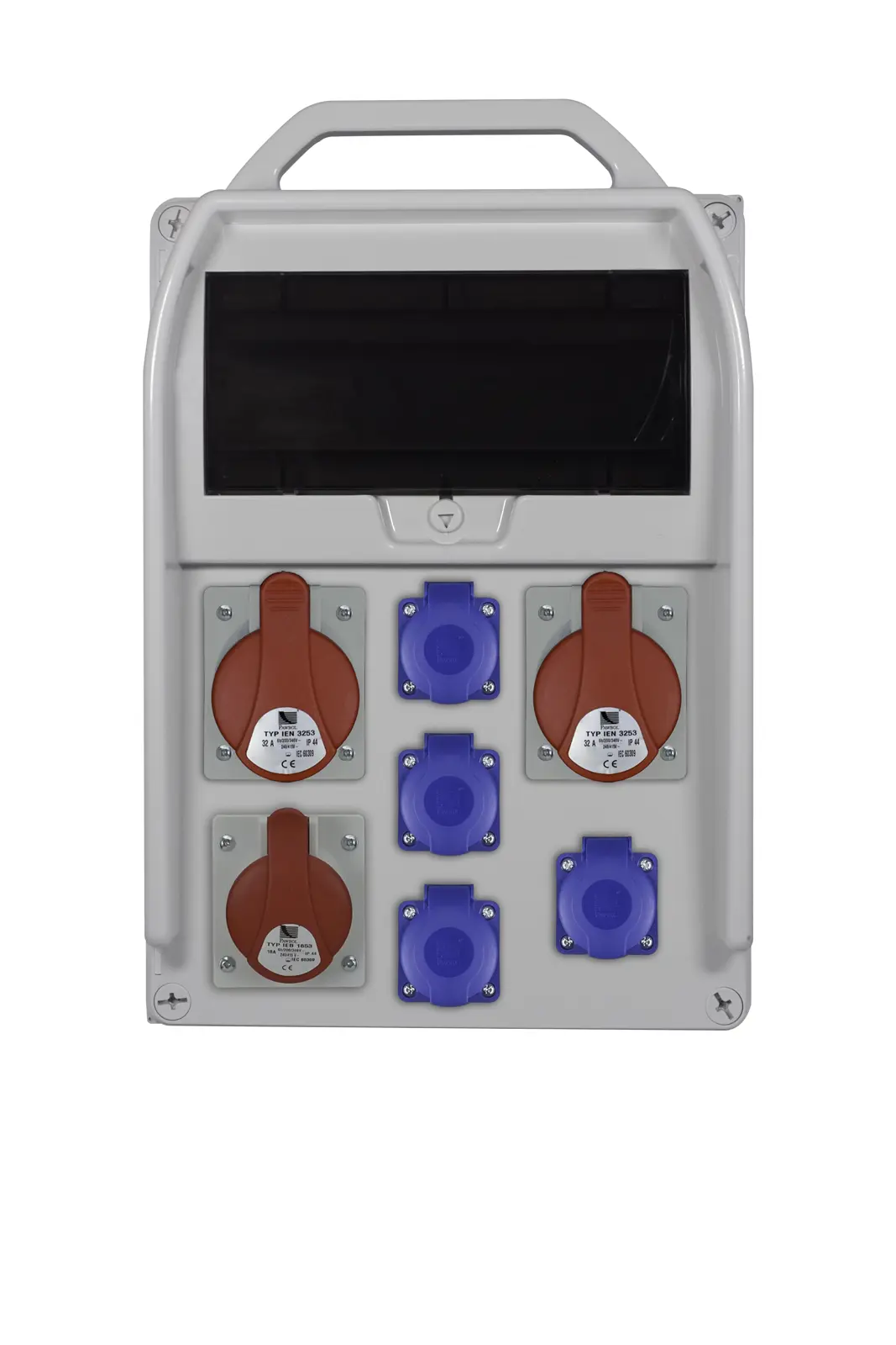 R-BOX 382R-11, PG21, ABS, IP44 11S inšpekčné okienko 4x16A/250V 1x16A/5p 2x32A/5p Rozmery: 275,8/425,5/158mm Balenie: 1ks