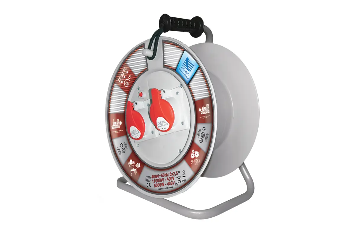 Prázdny bubon, IP44, tepelná ochrana, 400V Zásuvky: 2x32A/5p Priemer: 340mm Farba: biela Rozmery: 500/330/670