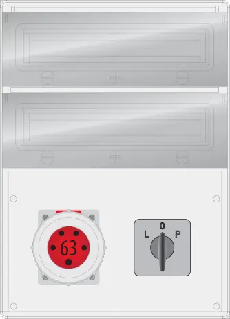 Zásuvková skriňa, PG21, IP65 Zásuvky: 1x63A/5 Prepínač Rozmery: 500/362/223mm Lišta TH35 súčasť balenia Farba dvierok: Transparentná Farba skrine: Šedá Ochrana pred mechanickými nárazmi: IK08 Tepelná...