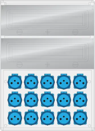 Zásuvková skriňa, PG21, IP65 Zásuvky: 15x250V/16A Rozmery: 500/362/223mm Lišta TH35 súčasť balenia Farba dvierok: Transparentná Farba skrine: Šedá Ochrana pred mechanickými nárazmi: IK08 Tepelná odolnosť: -25°C/+85°C Trieda izolácie II 18 zoslabenie pre vývodky - od 20mm do 40mm Materiál...