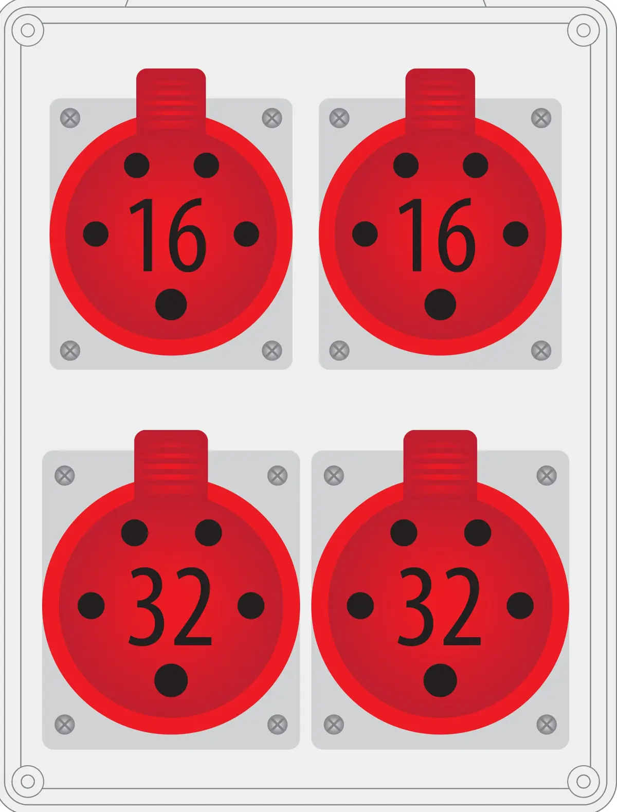 R-BOX SLIM s rúčkou, IK08, PG16, ABS, IP44 2x16A/5p 2x32A/5p Rozmery: 190/297/120mm Balenie: 1ks