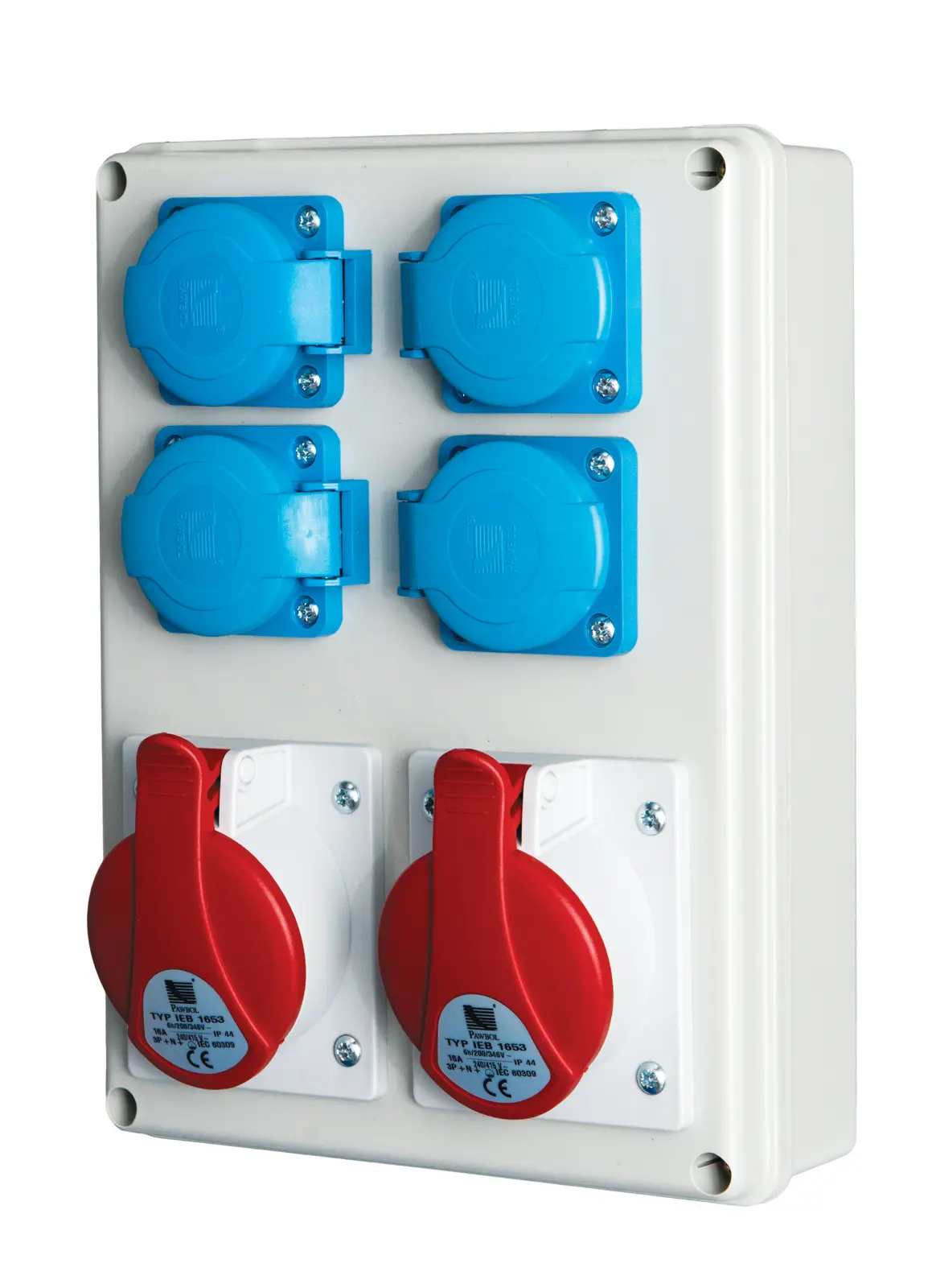 R-BOX SLIM, IK08, PG16, ABS, IP44 4x250V 1x16/4p 1x32/4p Rozmery: 190/297/120mm Balenie: 1ks