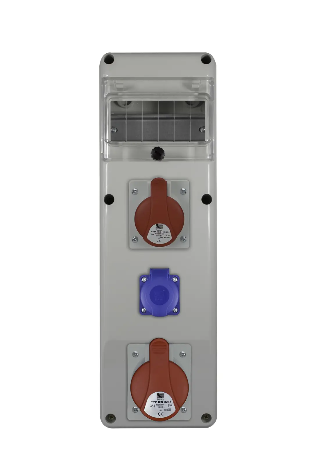 R-BOX SLIM-6, PG21, ABS, IP44 6S inšpekčné okienko 1x16A/250V 1x32A/5p 1x16A/5p Rozmery: 133/423,3/152mm Balenie: 1ks