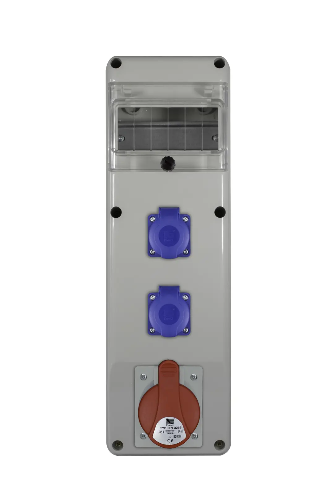 Rozbočnica na požiadavku zákazníka Obsahuje: R-BOX SLIM-6, PG21, ABS, IP44, 6S inšpekčné okienko, 2x230V, 1x32A/5p Istenie: 1xC16/3, 1xC16/1 Rozmery: 133/423,3/152mm
