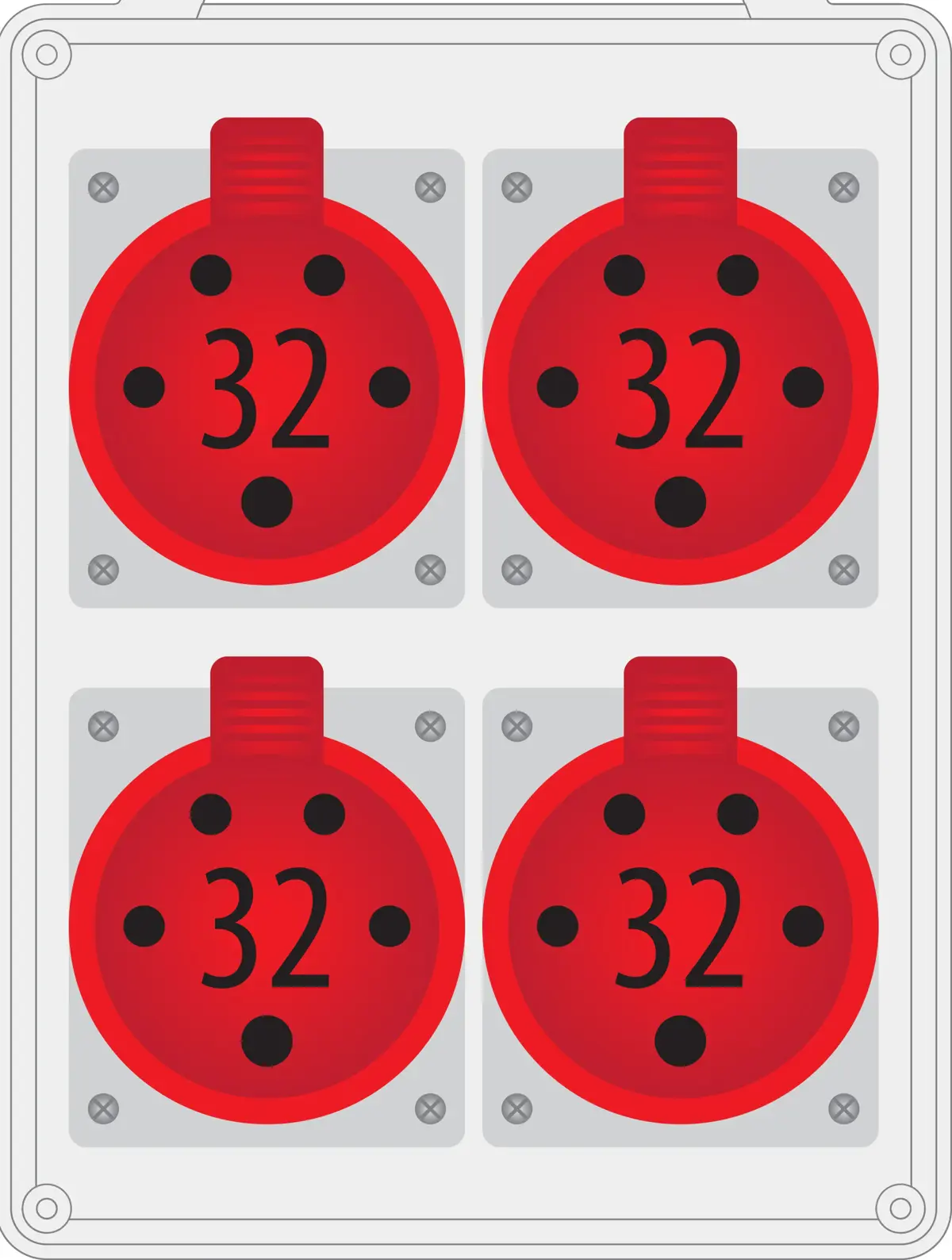 R-BOX SLIM, IK08, PG16, ABS, IP44 4x32A/5p Rozmery: 190/297/120mm Balenie: 1ks