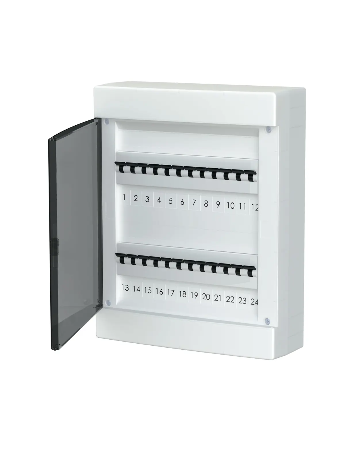 Nadomietková rozvodnica Počet modulov: 2x12 Krytie: IP40 Materiál rozvodnice: PS Materiál okienka: PC Rozmery: 350/95/275 Možnosť dokúpiť kovovú zámku: C.15-ZM