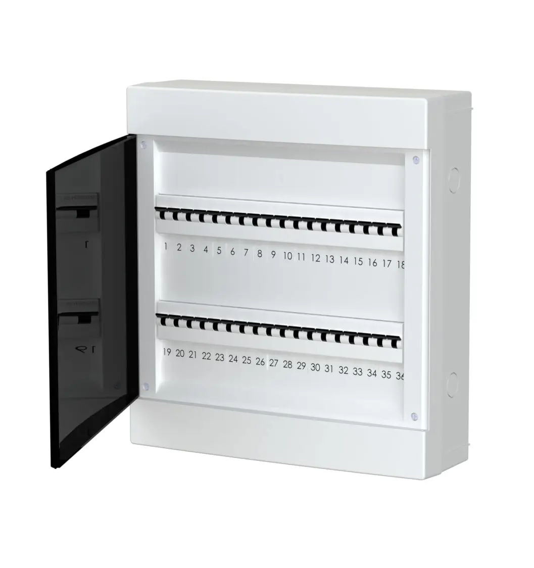 Nadomietková rozvodnica Počet modulov: 2x18 Krytie: IP40 Materiál rozvodnice: PS Materiál okienka: PC Rozmery: 425/119/389 Možnosť dokúpiť kovovú zámku: C.15-ZM