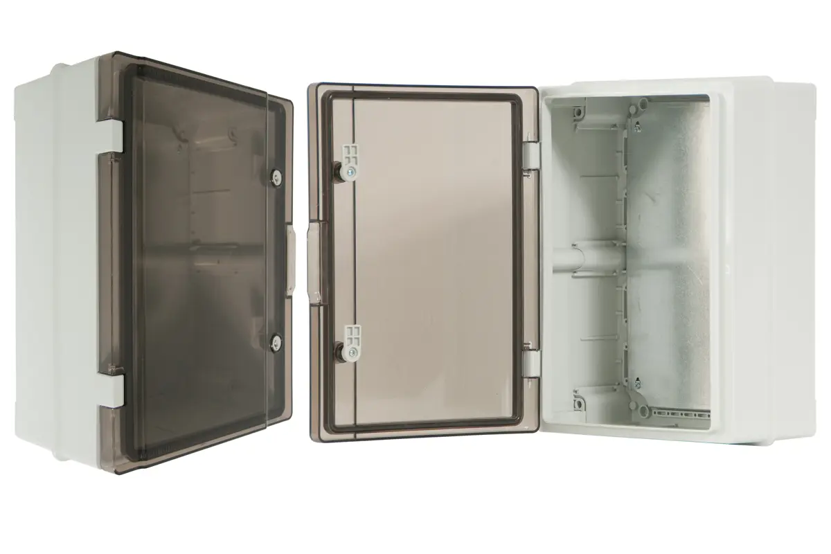 Typ: s priehľadnými dvierkami Krytie: IP65 Rozmer: 310/410/170/360/245mm Material skrinky: P-BOX: ABS, polyuretánové tesnenie Materiál priehľadných dvierok: Polykarbonát Vlastnosti: Mechanická odolnosť IK10 Použitie: -25C do +60C Farba: RAL 7035