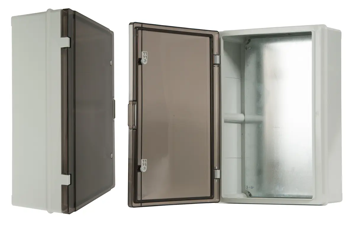 Typ: s priesvitnými dvierkami Krytie: IP65 Rozmer: 410/510/202/564/375mm Material skrinky: P-BOX: ABS, polyuretánové tesnenie Materiál dvierok: Polykarbonát Vlastnosti: Mechanická odolnosť IK10 Použitie: -25C do +60C Farba: RAL 7035