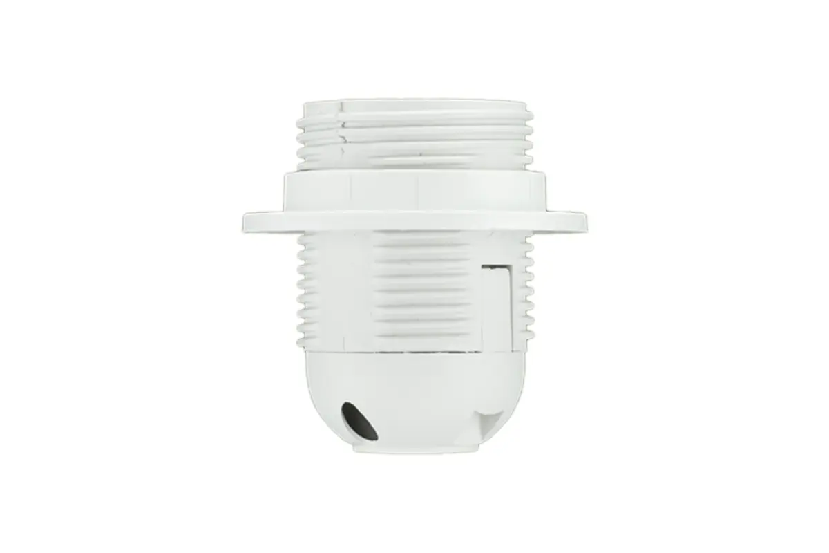 Termoplastová objímka E27 z golierom Farba: biela Rozmery: 41/61mm Upevnenie: M10x1 4A/250V - 50Hz BAlenie: 20 ks