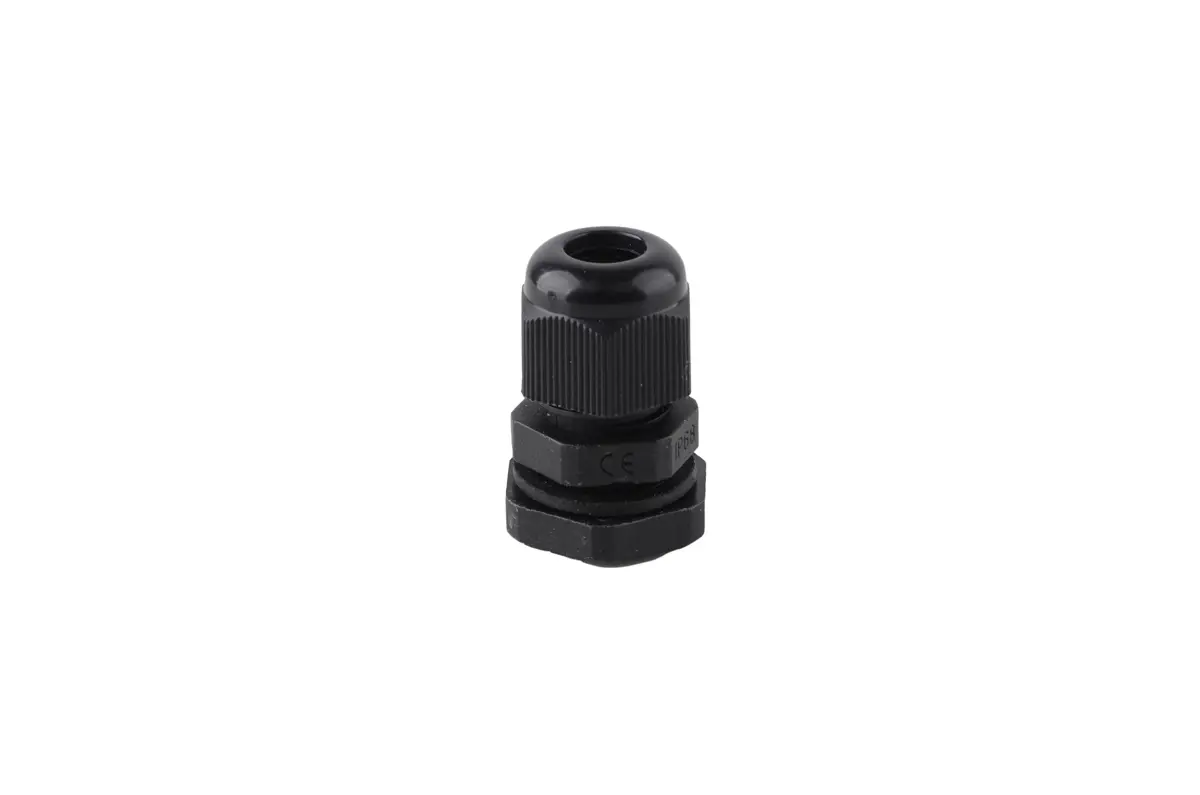 Typ: PG-9, IP68, čierna Priemer otvoru: 15,2mm D1: 15,2mm D2: 11mm B1: 8,0mm L1: 9,5mm L2: 21,0mm L3: 15,3mm Priemer kábla: 6,0-8,0mm Kľúč: 18/22mm Balenie: 50ks