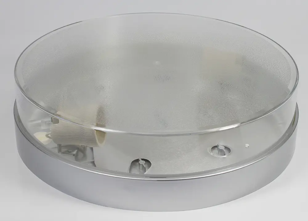 Svietidlo AFRODYTA, IP44, IK10, 2xE27 (25W), UV Snímač pohybu: ----------------- Rozmery: priemer 303 mm, výška:78,5 mm Farba prstenca: strieborná Farba krytu: transparentná Napájanie: 230VAC, 50Hz Balenie: 1 ks