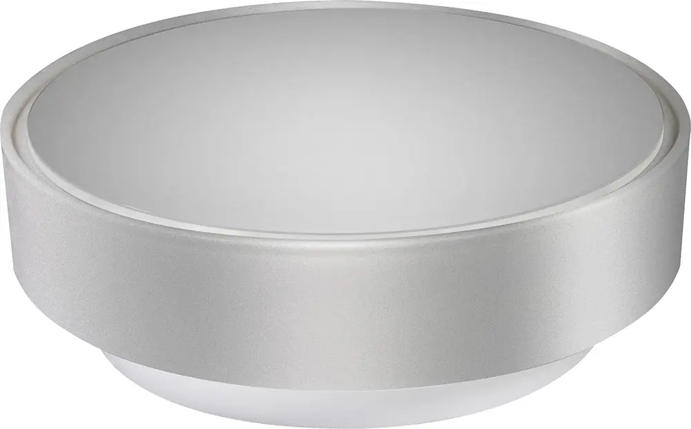 Svietidlo DIONE, IP65, IK10, LED SMD, UV, PG9 Snímač pohybu: radarový Rozmery: priemer 248mm, výška:88mm Farba svetla: neutrálna, 4000K Farba prstenca: strieborná farba spodku: biela Farba krytu: matná Svietivosť: 13W, 1400lm Napájanie: 230VAC, 50Hz Index podania farieb: CRI>80 Balenie: 1 ks