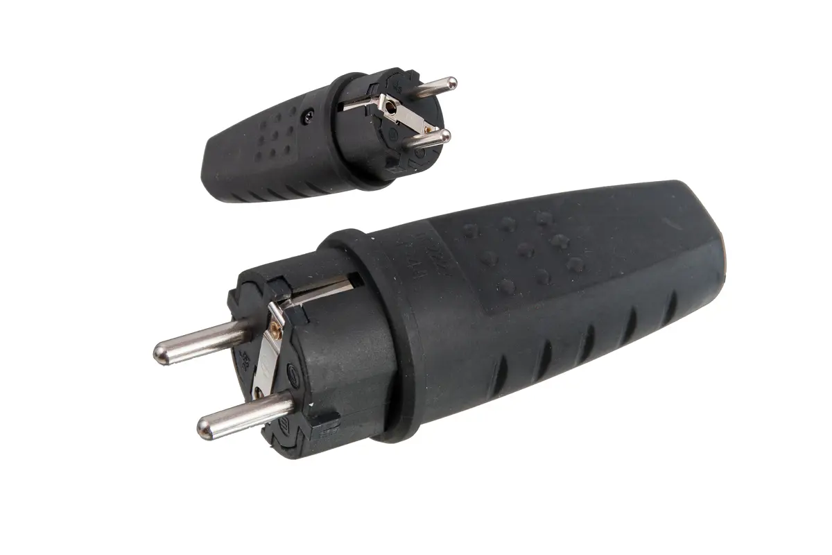 Gumová vidlica, IP44 16A/250V SCHUKO štandart Farba: čierna Balenie: 1ks
