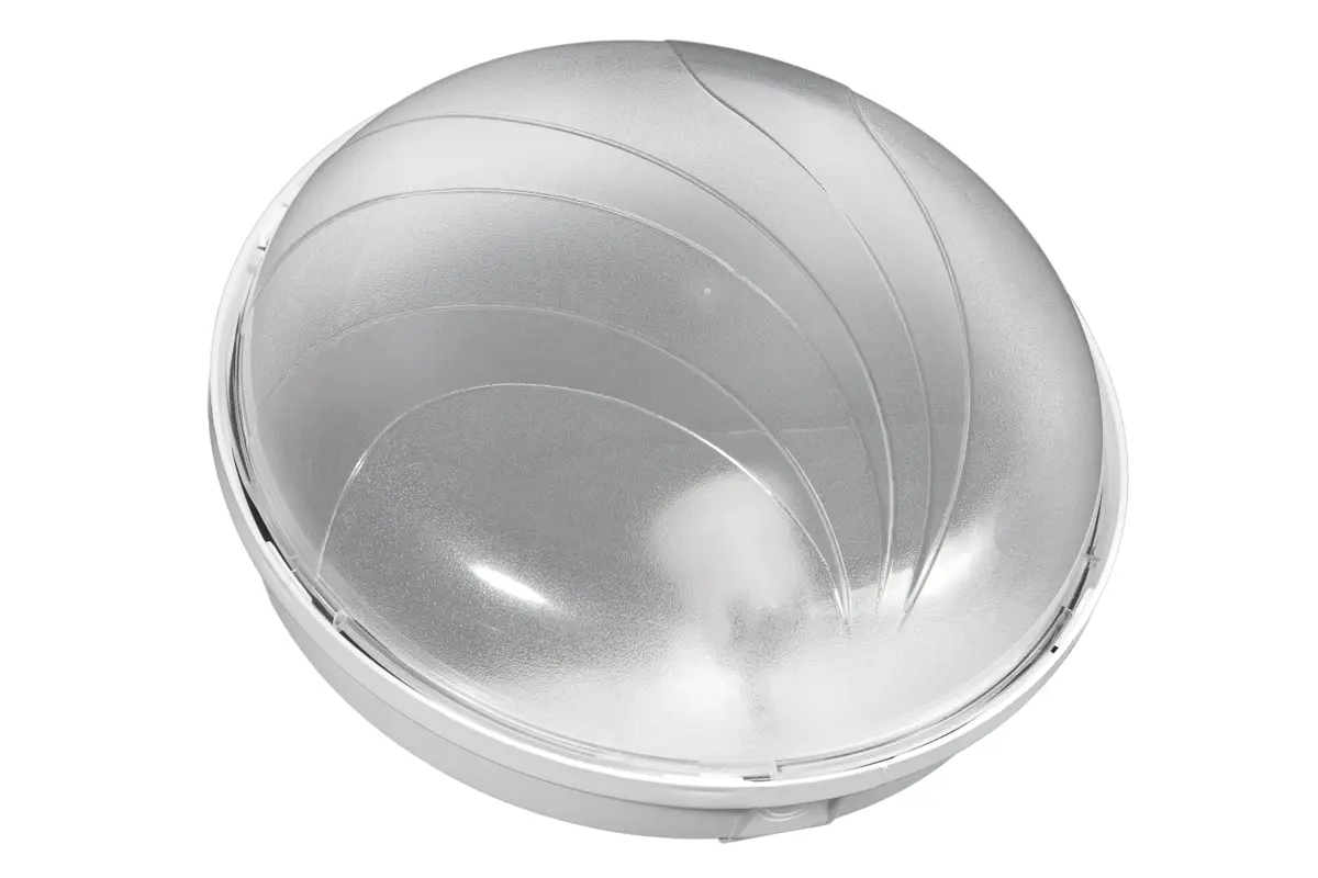 Svietidlo Panda, IP65, IK10, 1xE27 (40W), PG9, UV Snímač pohybu: -------------- Rozmery: priemer 280mm, výška:106mm Farba prstenca: biela Farba krytu: transparentná Napájanie: 230VAC, 50Hz Balenie: 1 ks