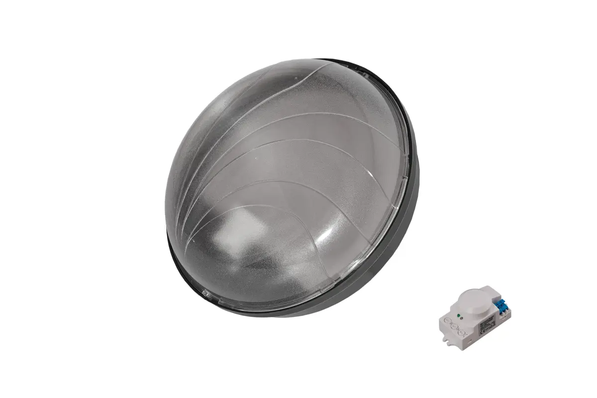 Svietidlo Panda, IP65, IK10, 1xE27 (40W), PG9, UV Snímač pohybu: radarový Rozmery: priemer 280mm, výška:106mm Farba prstenca: čierna Farba krytu: matná Napájanie: 230VAC, 50Hz Balenie: 1 ks