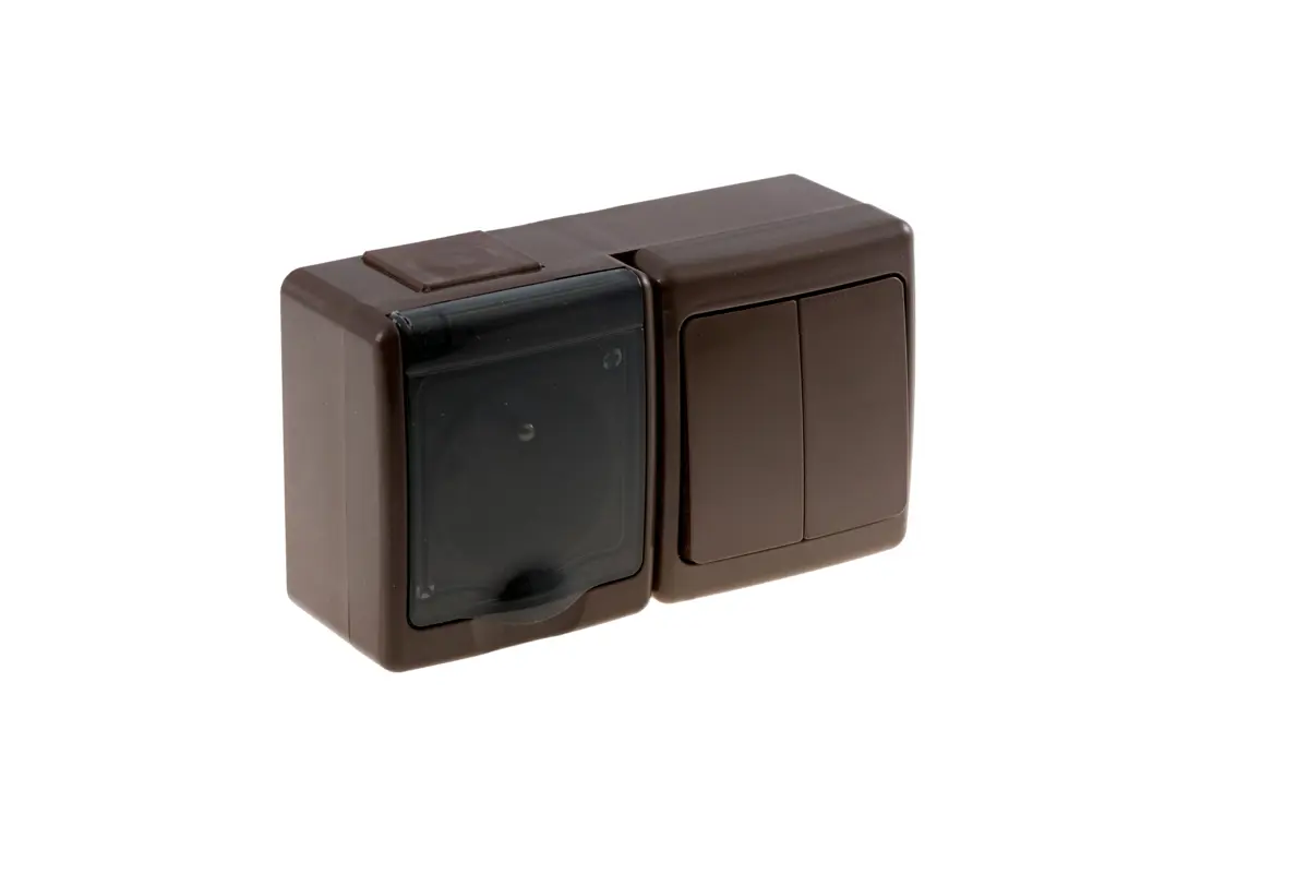 Vypínače IP44 BETA, 250V, Typ: dvojnásobný lustrový Zásuvky 2P+Z: 1 Farba krytky: kourová Rozmery: 75/48/130 Balenie: 6ks