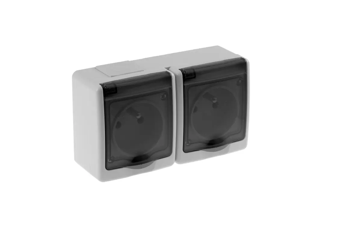 Vypínače IP44 BETA, 250V, Typ: dvojnásobný Zásuvky 2P+Z: 1 Farba krytky: kourová Rozmery: 75/48/65 Balenie: 12ks