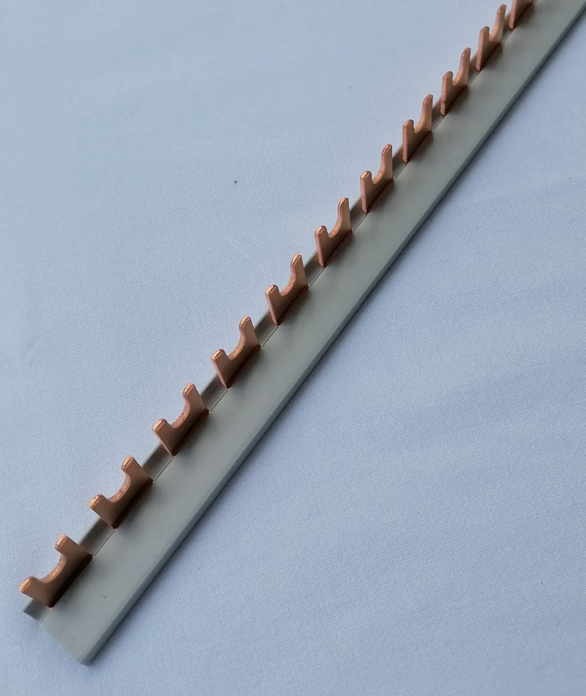Prúdová lišta prevedenie "uhlová vidlička" Prierez: 16 mm2 Počet modulov: 54 Počet fáz: 1 Dlžka: 1.000mm Hmotnosť: 300g