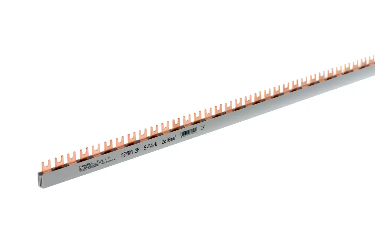 Prúdová lišta prevedenie "vidlička" Prierez: 16 mm2 Počet modulov: 54 Počet fáz: 2 Dlžka: 1.000 mm Hmotnosť: 120g
