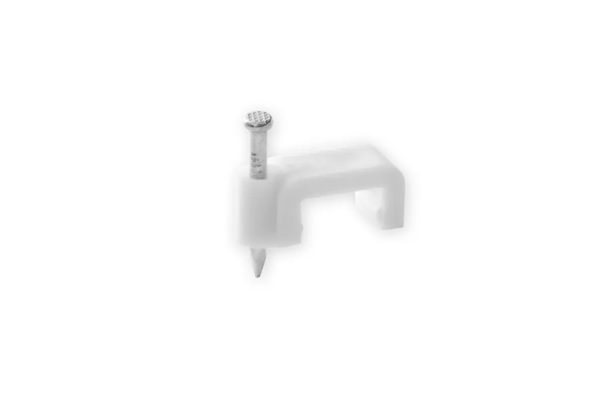 Káblová príchytka s klincom Typ: plochý Farba: biela Veľkosť: YDYp 3x1,5 10/6 Veľkosť klinca: 20/2 Balenie: 100ks