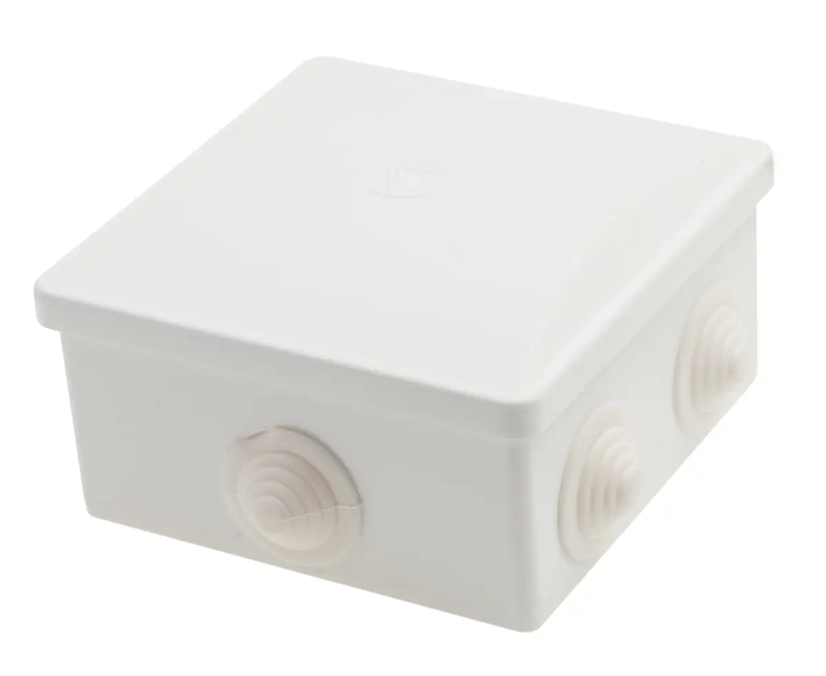 Typ: kvadrát, klik Farba: biela, Rozmery: 80x80x40, Počet vývodiek: 6, Typ vývodky: okrúhla, Vývodka: PG13,5, Krytie: IP44, Balenie: 10ks